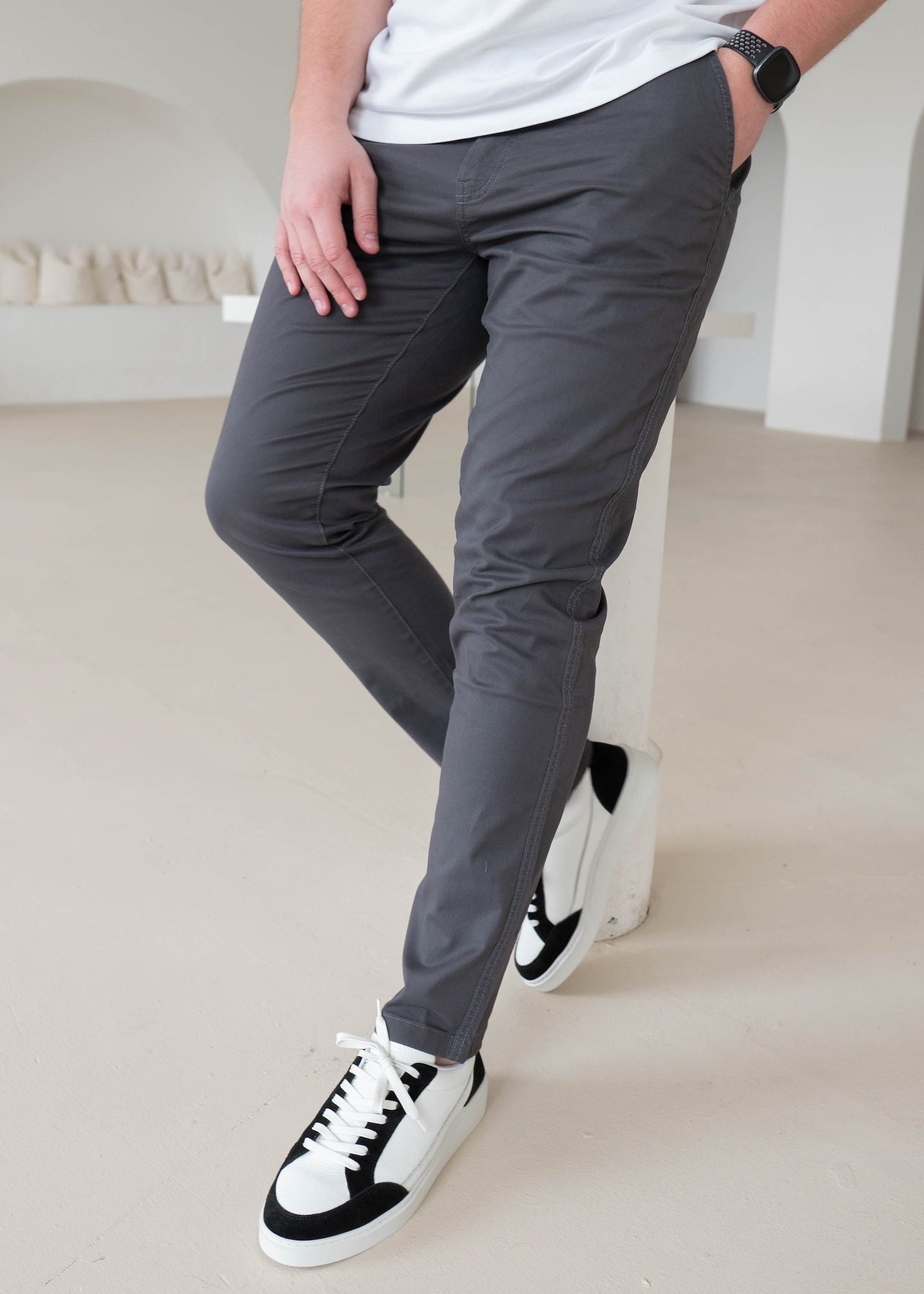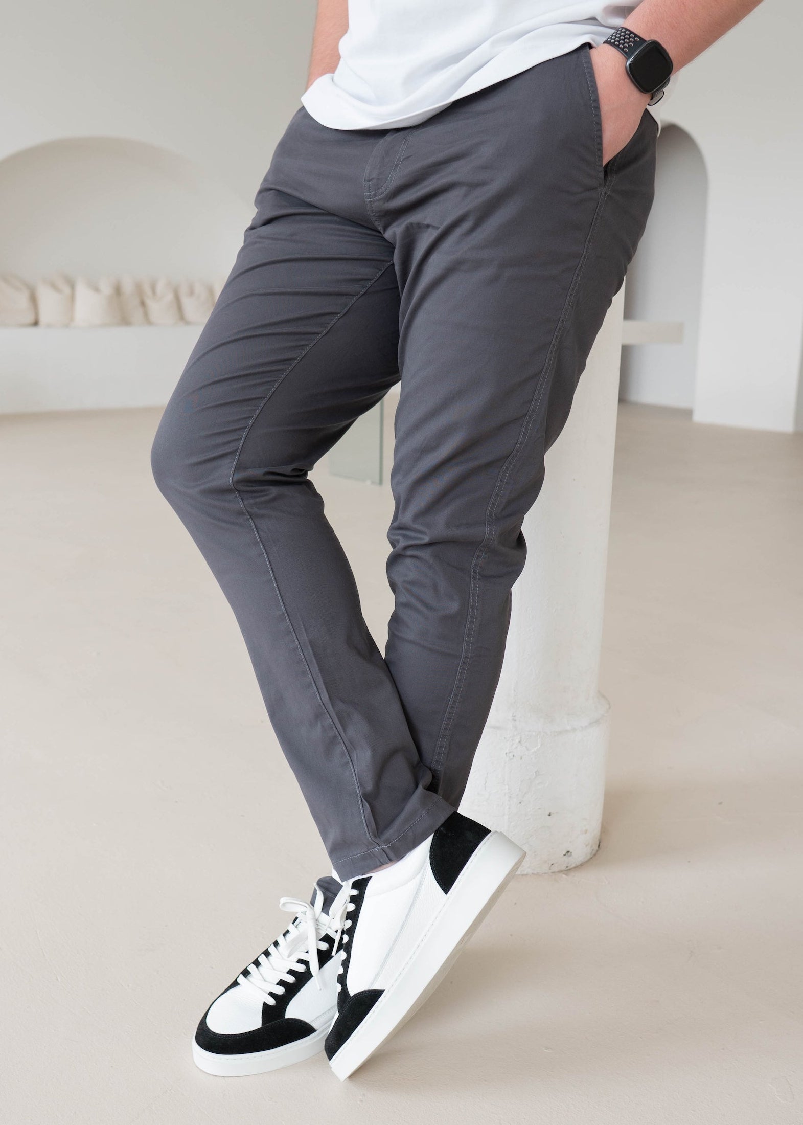 Slim Comfort Chinos In Charcoal